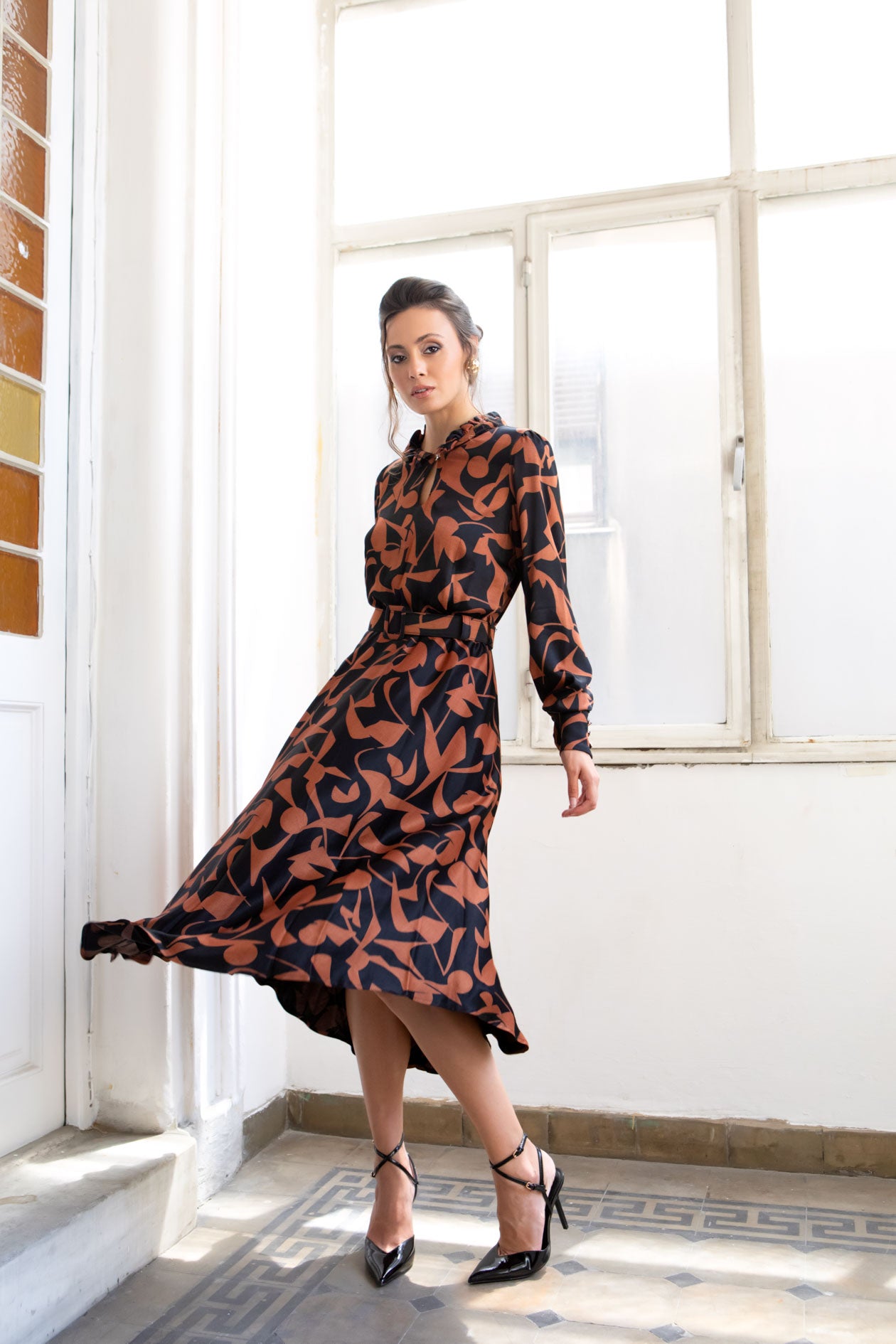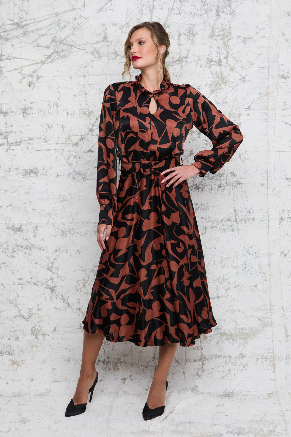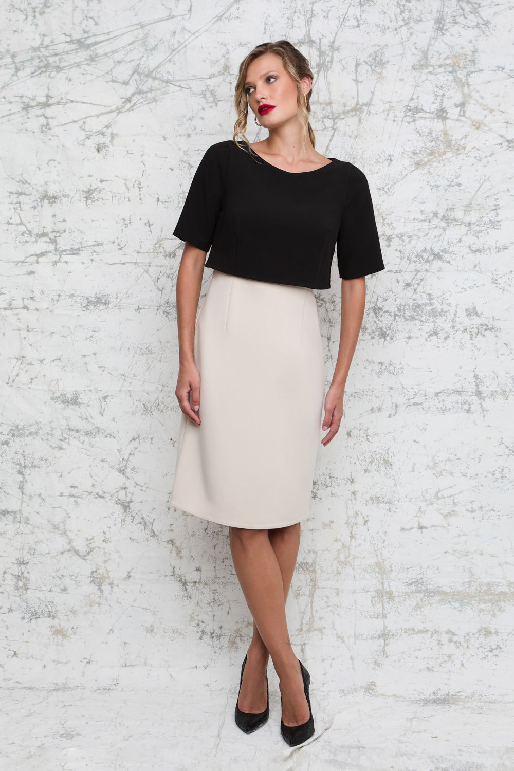 Δίχρωμο Midi Φόρεμα Noir & Ivory