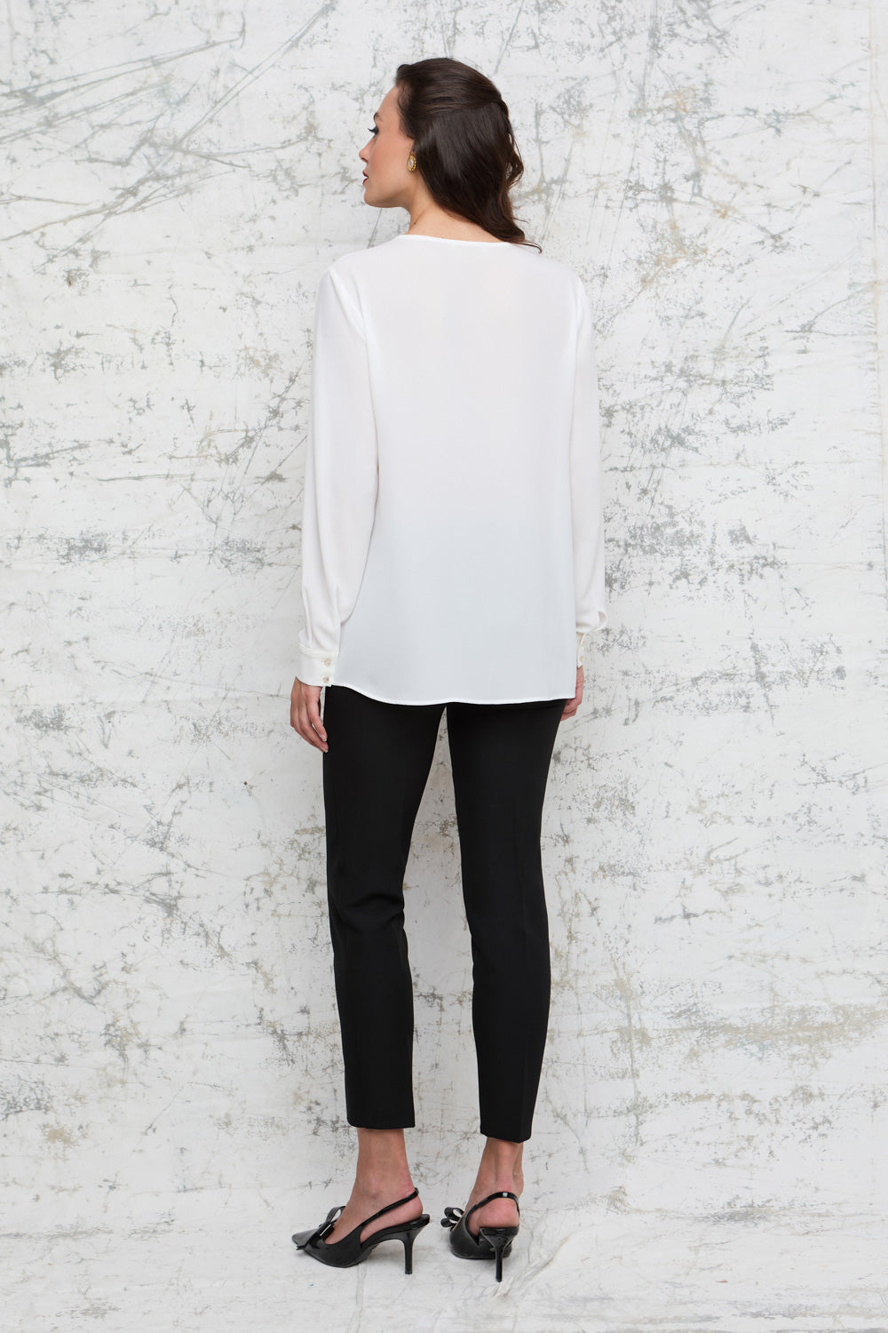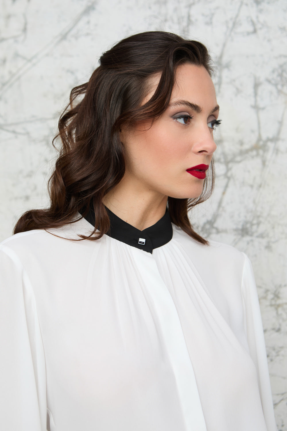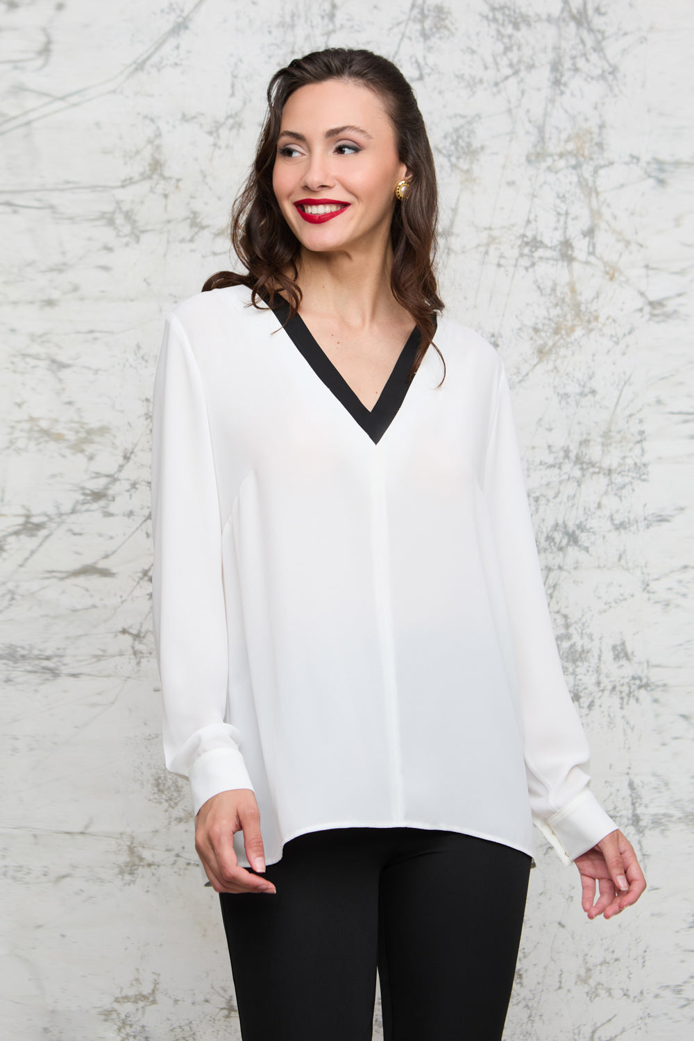 Λευκό Πουκάμισο με Μαύρη V Λαιμόκοψη