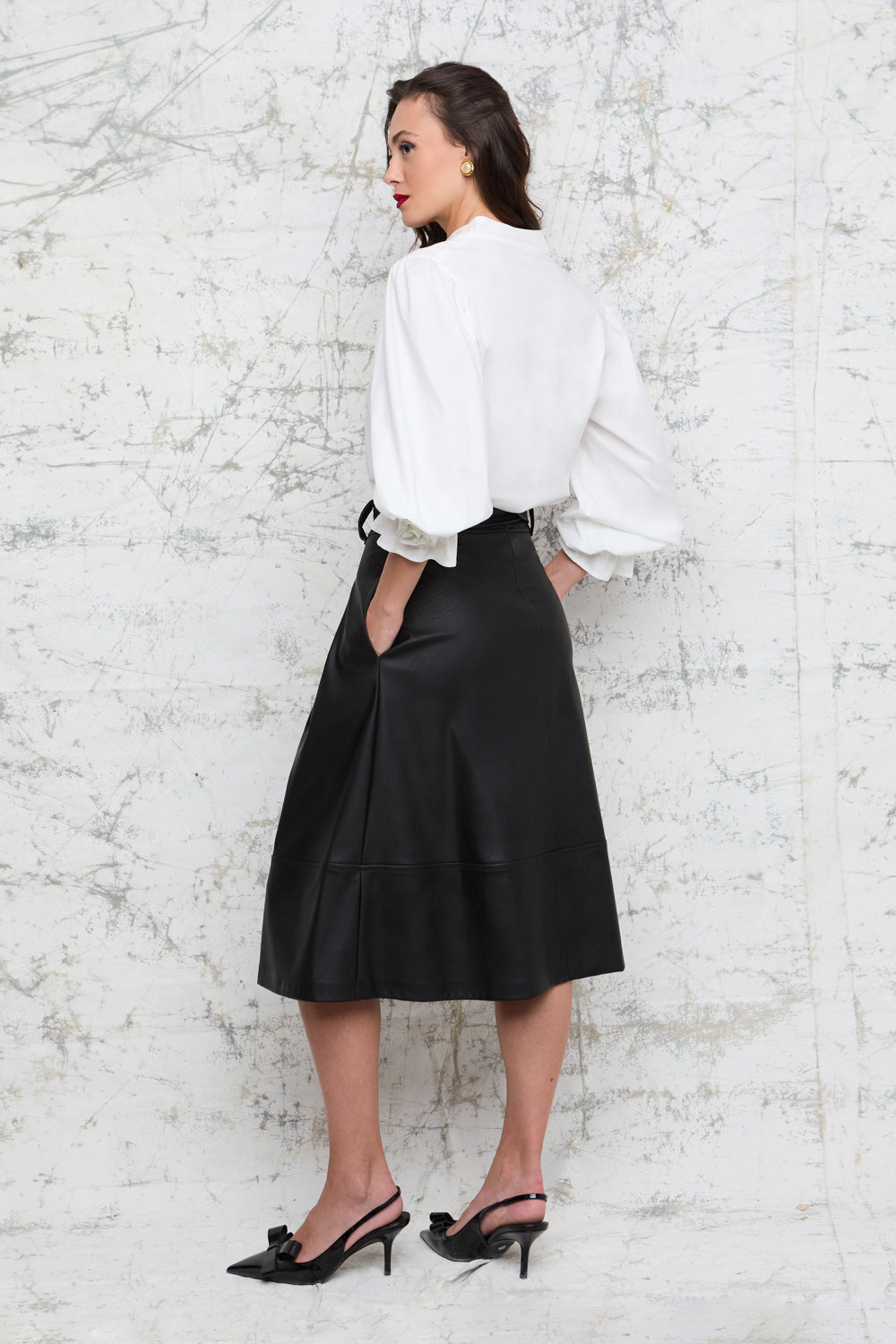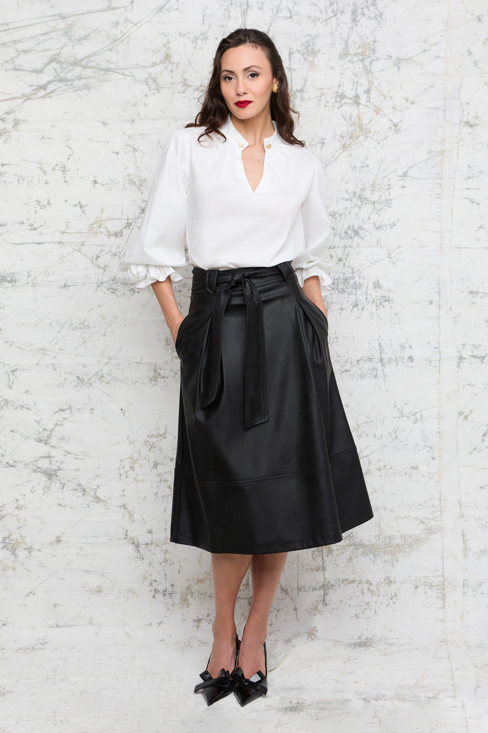 Noir Bond – Midi Φούστα από Δερματίνη σε Α Γραμμή με Ζώνη