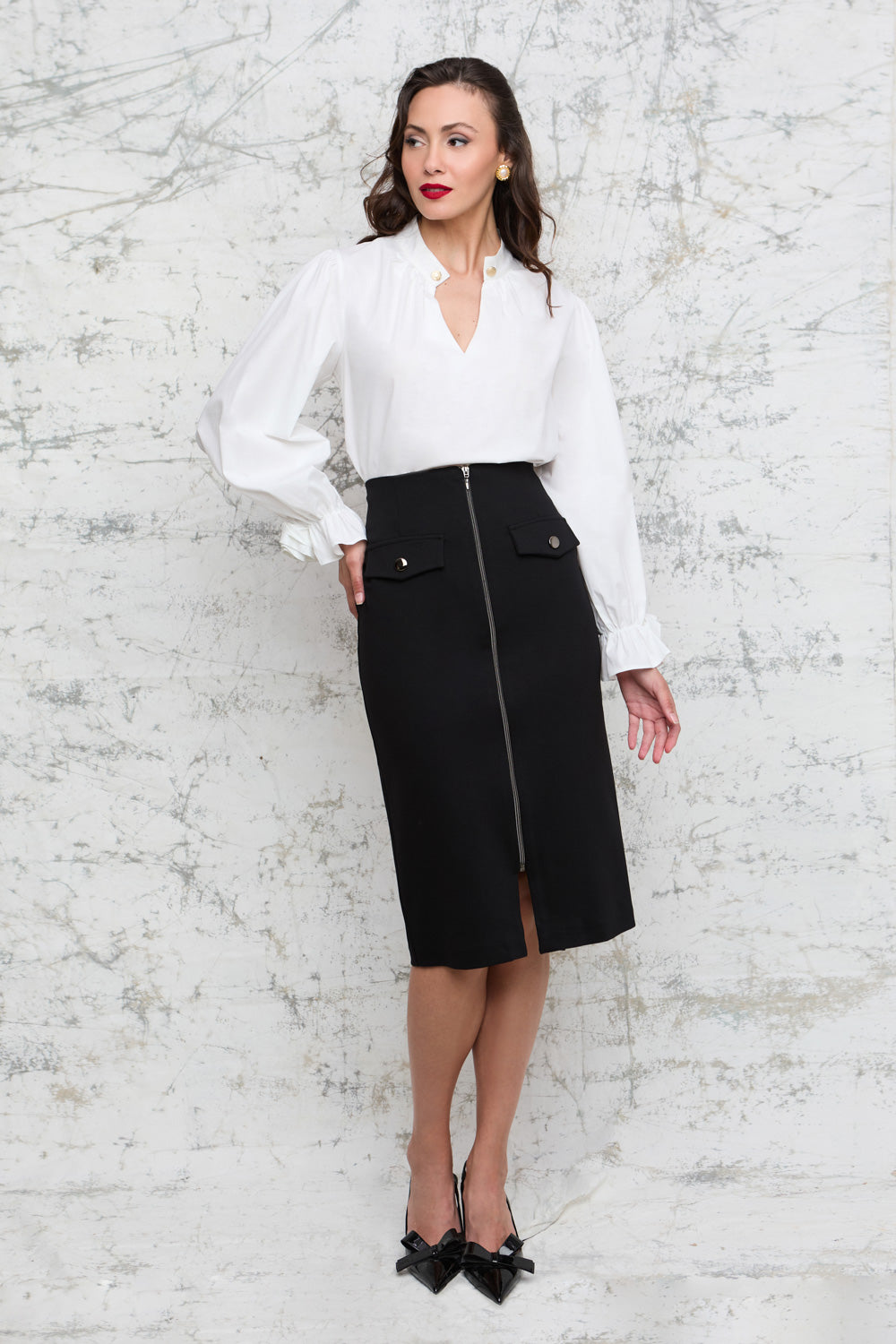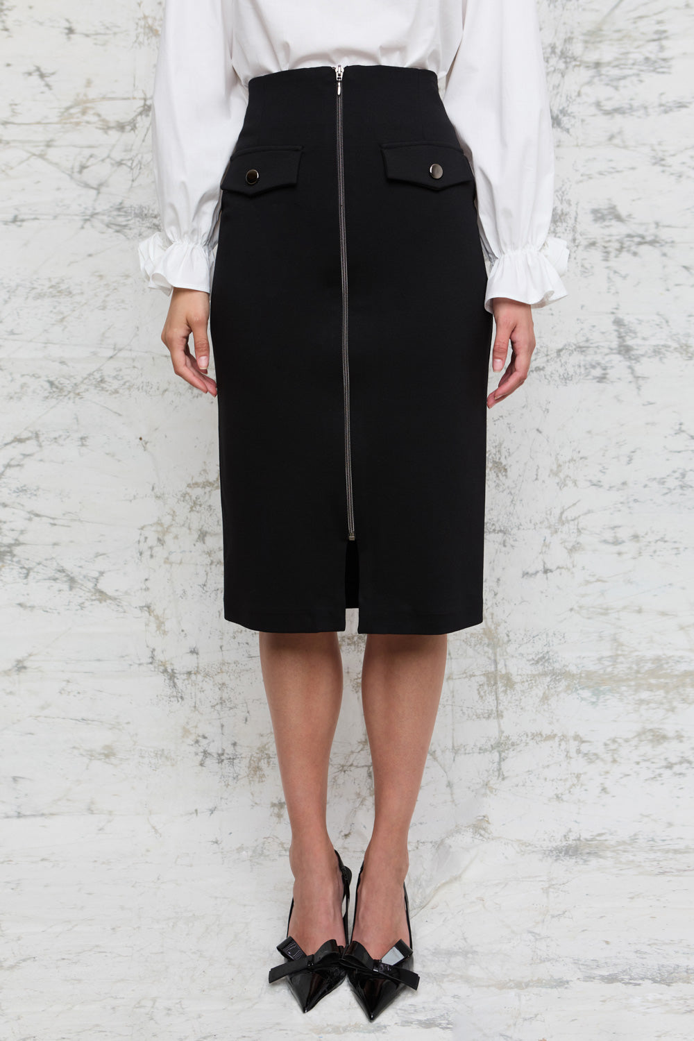 Shadow Line – Μαύρη Pencil Φούστα με Φερμουάρ και Διακοσμητικές Τσέπες