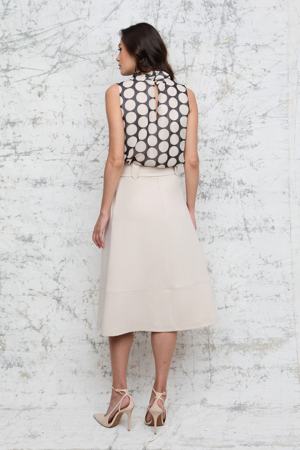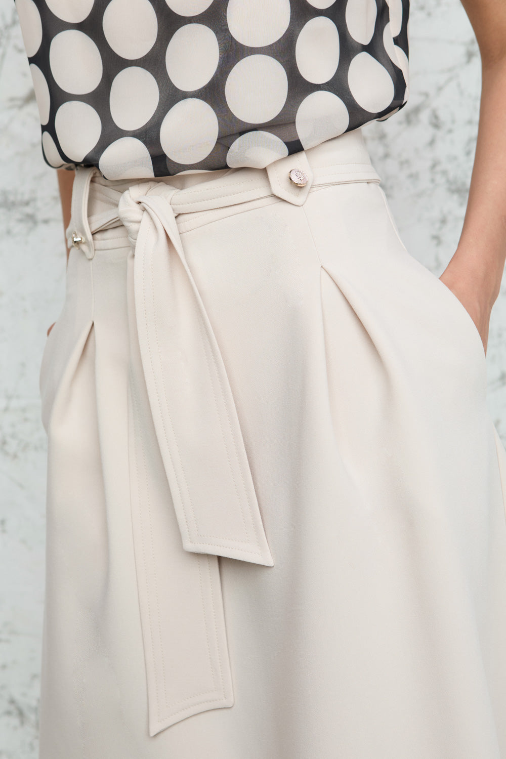 Ivory Whisper – Midi Φούστα σε Α Γραμμή με Ζώνη και Πιέτες