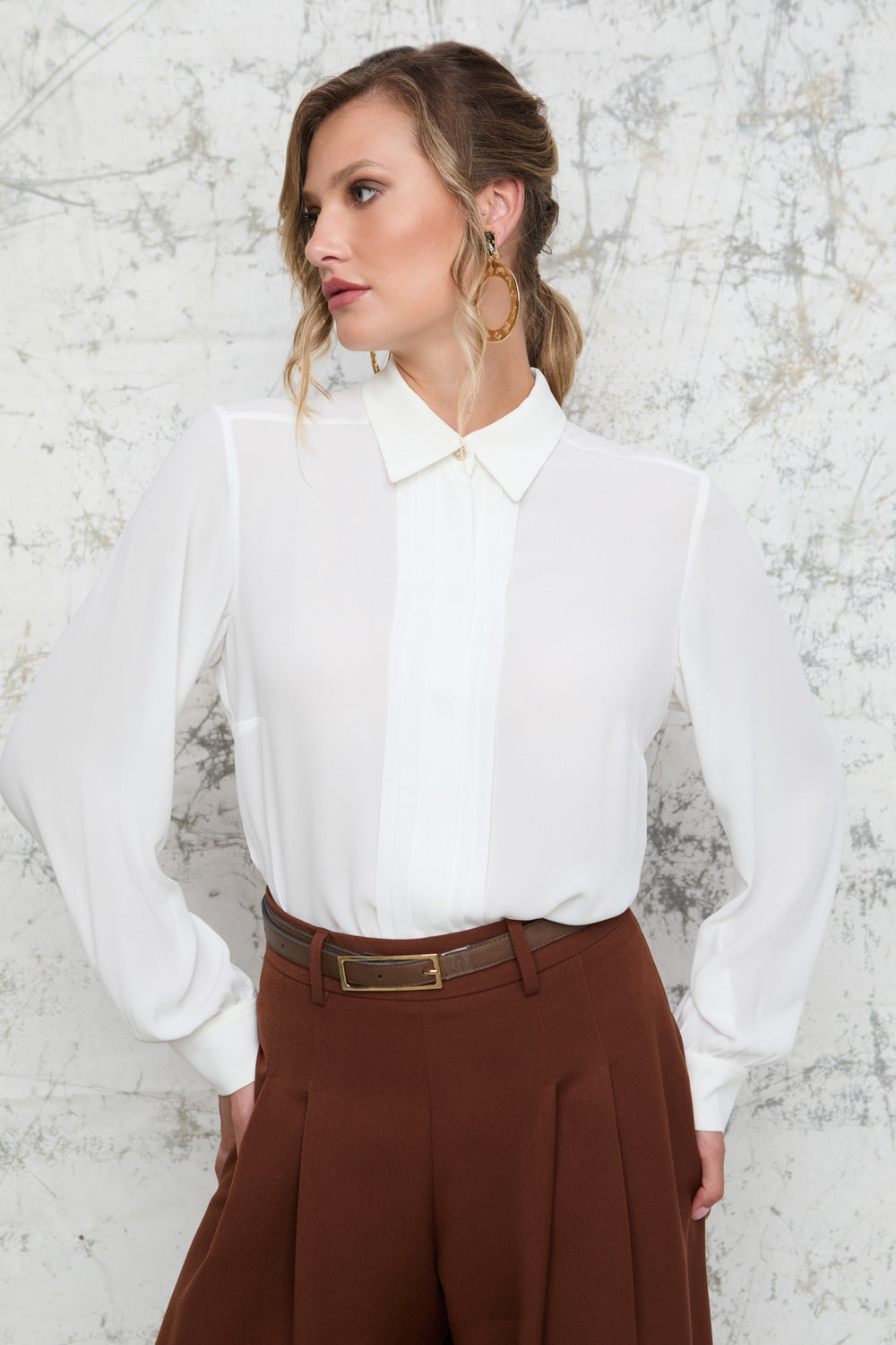 Λευκό Classic Shirt με Μακρύ Μανίκι & Κρυφή Πατιλέτα