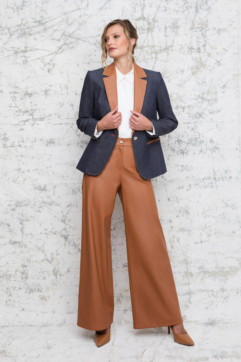 Bronze Horizon – Denim Blazer με Πέτο από Δερματίνη