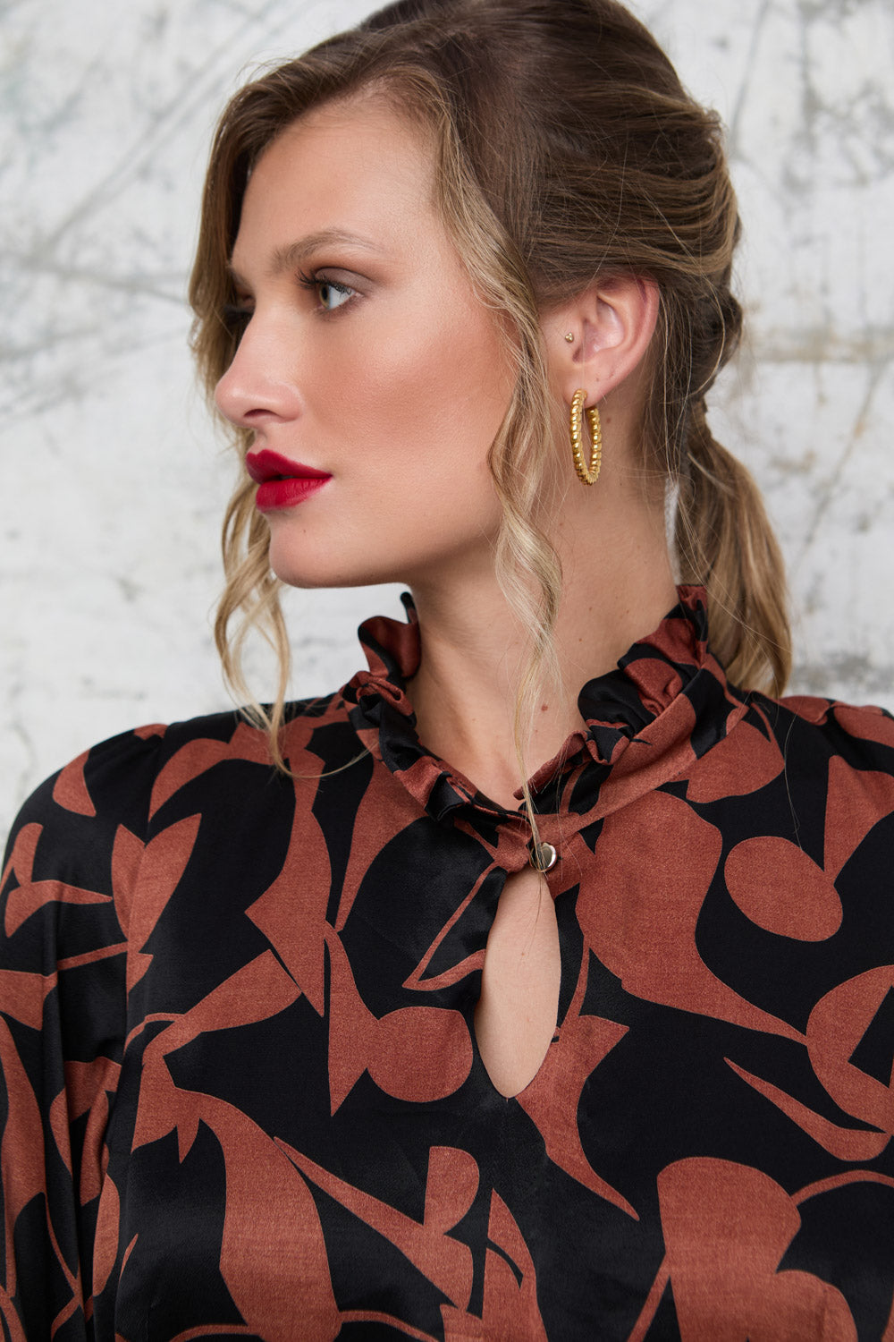 Μπλούζα Σατέν Floral με V Λαιμόκοψη
