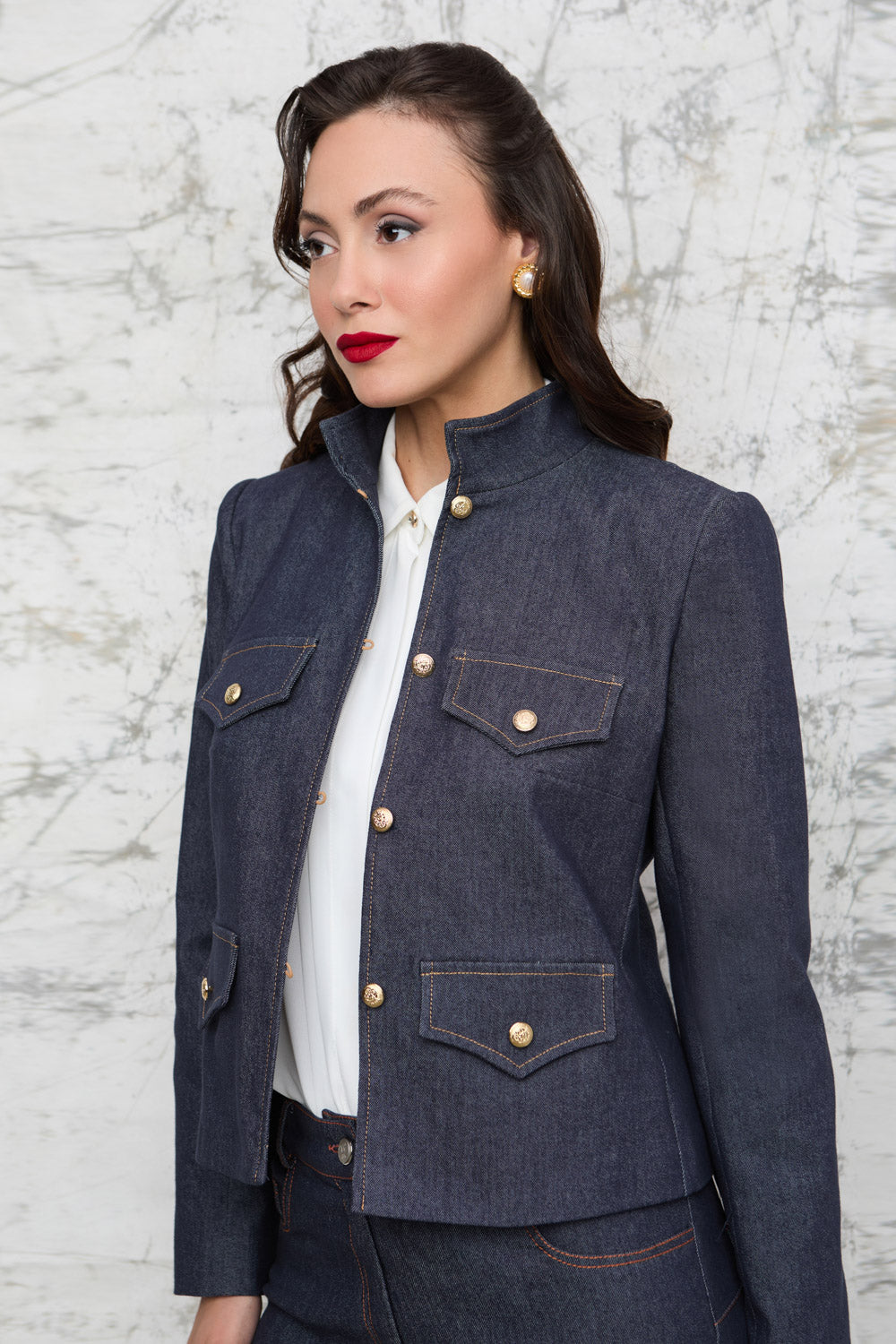 Midnight Edge – Τζιν Σακάκι με Χρυσά Κουμπιά