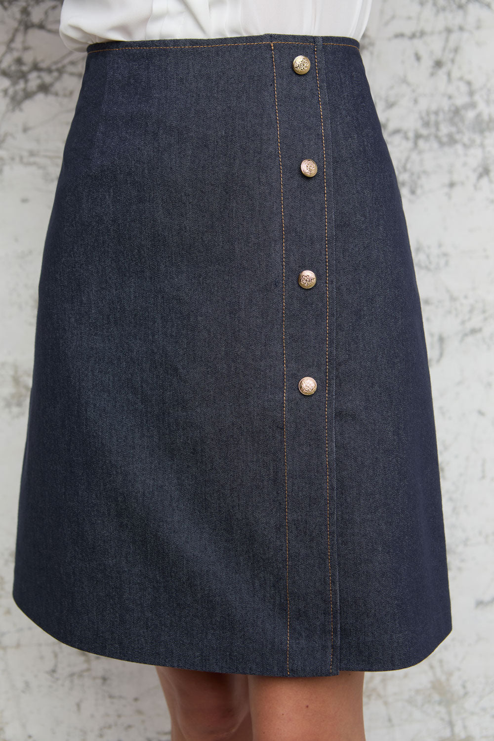 Midnight Stroll – Τζιν Φούστα σε Α Γραμμή με Χρυσά Κουμπιά